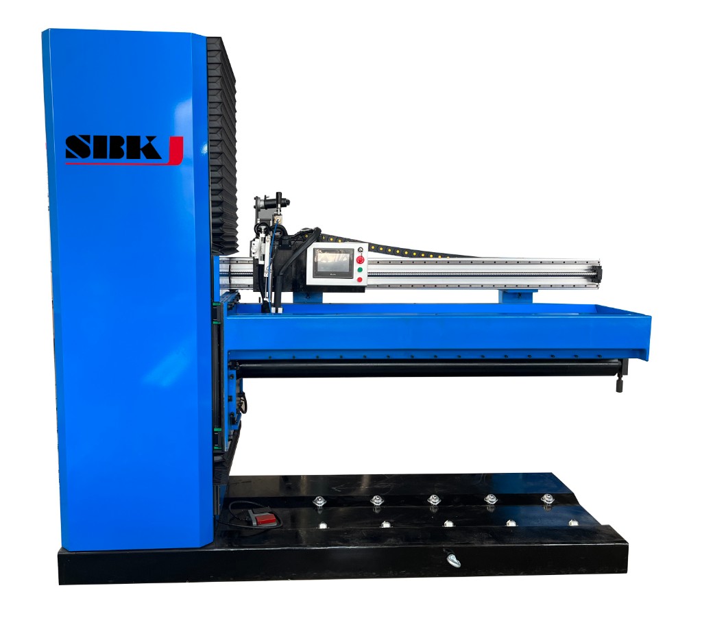 Welding machines on a duct line are second-stage stations that sit downstream of the forming station. The longitudinal seam welder closes the seam on rolled tube before the duct goes to flanging; the circumferential welder attaches angle flanges or reinforcement bars on heavy industrial duct; the spot welder tacks corner joints and bracing on rectangular duct above 2 mm wall thickness. SBKJ welding stations integrate with both the spiral duct line and the rectangular SBAL line. They are supplied with fume extraction connection points, operator screens, and dedicated 415V three-phase power feeds as standard.